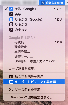 キーボードが壊れていないか、電気信号がきちんと送られているか確認するには、システム環境設定 > キーボード からキーボードタブにて「メニューバーにキーボードビューアを表示」が有効になっていることを確認する。有効となっている場合、「キーボードビューアを表示」させることができます。